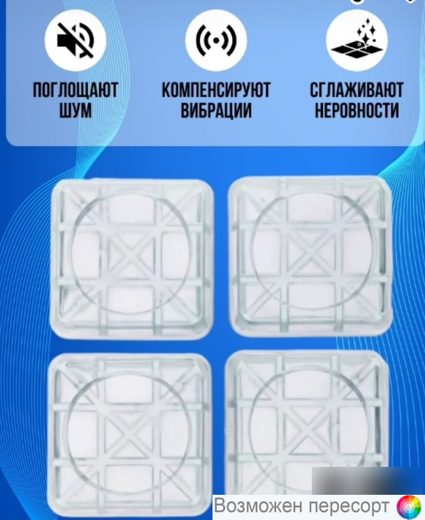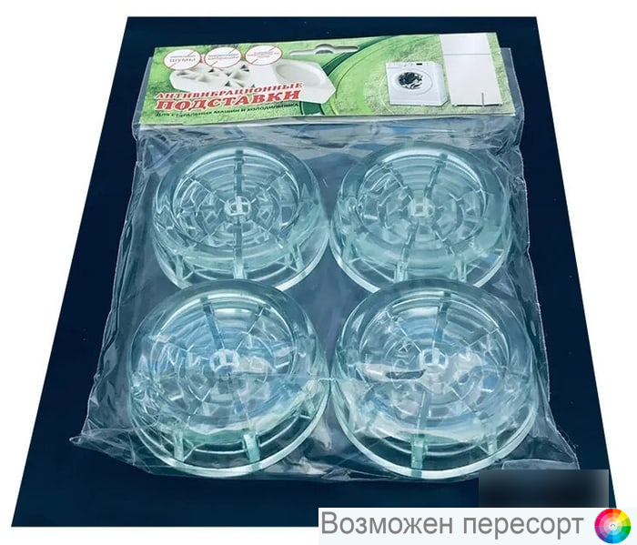 Комплект вибропоглощающих защитных подставок для стиральных машин или холодильников изготовлен из специального высокопрочного полимерного материала. Оптимальная форма и цельная структура подставки позволяют добиться значительного снижения вибрации. В случае изменения местоположения холодильника или стиральной машины Вы будете избавлены от необходимости закрывать следы от его ножек или делать дорогостоящий ремонт. Применяется для: 1. Снижения вибрации при установке на деревянные полы и другие не жесткие покрытия. 2. Предотвращения передачи вибрации и шума на пол при установке на железобетонные, каменные полы или керамическую плитку. 3. Предотвращения смещения стиральной машины в режиме отжима. Комплектация В комплекте 4 штуки.