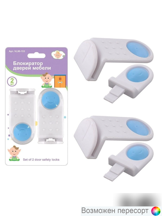 Блокираторы для дверей незаменимая вещь, если в Вашем доме есть маленький ребенок. Они уберегут активного малыша от всевозможных травм, позволят оградить ребенка от проникновения в нежелательные места. Подходят для шкафов и тумбочек с двойными дверками, а также для любой другой мебели и бытовой техники, где есть открывающиеся дверцы. УСТАНОВКА: Очистите поверхность, куда необходимо установить блокиратор; снимите защитный слой липкой ленты и зафиксируйте блокиратор на углу мебели; удерживайте 3-4 секунды для надежной фиксации. Перед первым применением, протрите накладку влажной тканью.