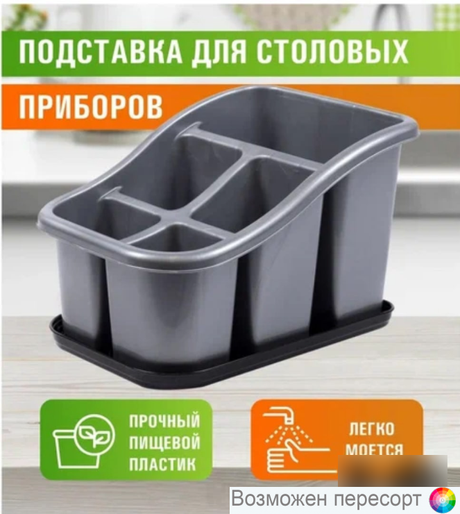 На кухне очень удобно иметь и подставку, и сушилку, но еще лучше, если это 2 в 1. Органайзер сушка для столовых приборов ( ложек, вилок, ложечек, ножей, ножиков, приборов ) оснащен поддоном (он не даст влаге попасть на поверхность столешница и защитит ее от царапин), содержит в себе 5 ячеек, в каждую из которым можно размещать определенные приборы: в одну секцию только столовые ложки, в другую только чайные (та же история и с остальными принадлежностями). Система хранения изготовлена из прочного пищевого пластика, легко моется. Также сушилка имеет стильный дизайн и оптимальный размер (130*200*150 мм). Упростите себе жизнь, создайте уют на кухне с держателем для столовых приборов.